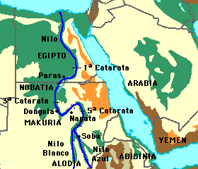 entre la primera y la tercera catarata del Nilo, con capital en Paras; y al sur estaba el reino de Makuria, con capital en Dongola. Aún más al
