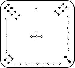 en la que las tres filas, las tres columnas y las dos diagonales del cuadrado