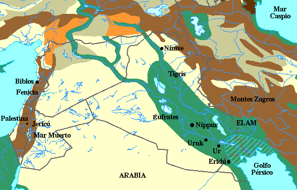 alimentaba de la cultura sumeria. Al este de la Baja Mesopotamia, al sur de los