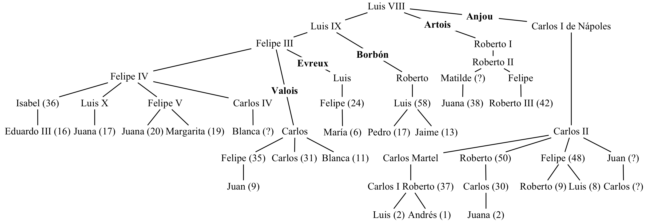 diagrama siguiente muestra los principales descendientes del rey Luis