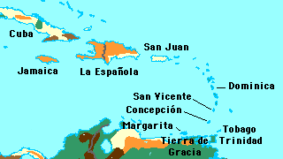 en el que fue su tercer viaje a las Indias. En agosto llegó a una isla a la que