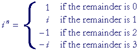 Note: Even powers of i will be either 1 or −1, according as the exponent is a multiple of 4 or 2 more than a multiple of 4. While odd powers will be either i or −i.