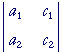 Then the determinant of that matrix -- which we will call Dx -- is c1b2 − b1c2 And consider this matrix in which the c's replace the coeffients of the y's: