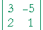Solution. We must make one pair of coefficients negatives of one another. In this example, we must decide which of the unknowns to eliminate, x or y. In either case, we will make the new coefficients the Lowest Common Multiple (LCM) of the original coefficients -- but with opposite signs. Thus, if we eliminate x, then we will make the new coeffients 6 and −6. (The LCM of 3 and 2 is 6.) While if we eliminate y, we will make their new coefficients 10 and −10. (The LCM of 2 and 5 is 10.) Let us choose to eliminate x: