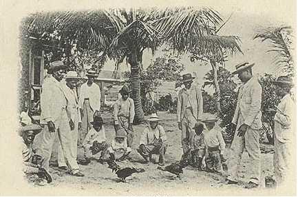 y picotazo limpio. Mientras a gritos, los bulliciosos galleros le apostaban