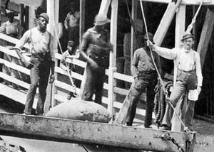 subir la carga al buque que bajaban de los carretones de bueyes.