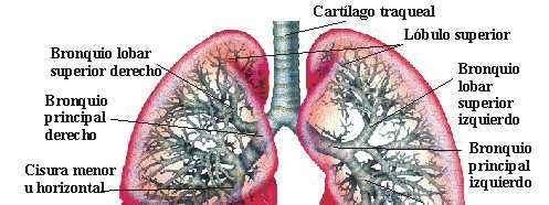 En esta ilustración se esquematizan la tráquea, los grandes bronquios