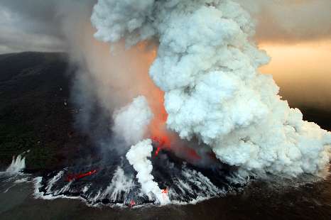 hasta que la lava endurecida sobrepasó el nivel del mar.