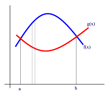 Si nos piden que calculemos el área comprendida entre las curvas g(x) y f(x) Este área es: