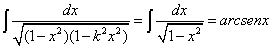 Como x necesariamente tiene que ser menor que 1, pues de lo contrario la raíz se haría negativa, podemos hacer el cambio x = sen f nos queda: