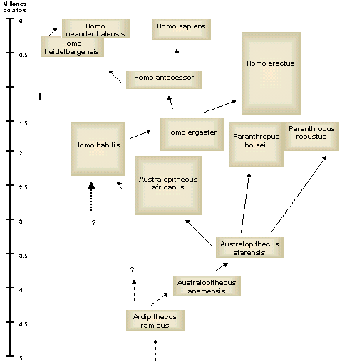 ÁRBOL EVOLUTIVO DE LOS HOMÍNIDOS