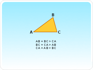 Para cualquier triángulo ABC, la suma de cualesquiera dos de sus lados es siempre mayor a la longitud del tercero.