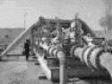 equipo portable de perforación para operar en aguas proximas a las costas de Lousiana y Texas; el credito le corresponde a Louis Giliasso un petrolero tejano.