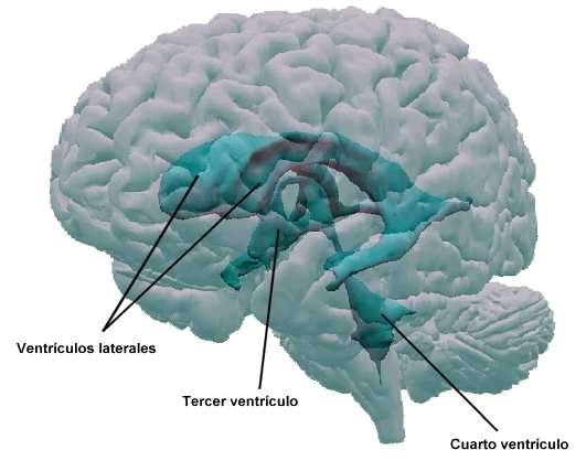 los ventrículos laterales, el tercer ventrículo y el