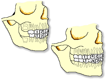 La dentición definitiva posee un total de 32 piezas dentarias; en cada arcada dentaria se reconocen: 4 incisivos, 2 caninos 4 premolares y 6 molares. Esta dentición aparece en boca a los 6 años, con el primer molar que se ubica detrás de los molares de leche; luego sigue el recambio de los incisivos de la dentición temporal, y el último molar definitivo (del juicio) aparece a los 18 años. |