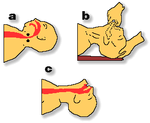 En caso de pérdida de conciencia, la lengua puede bloquear la vía aérea superior; situación grave que puede producir la asfixia del paciente. Para despejar la vía aérea, basta hiperextender el cuello del paciente, de esta manera queda la vía expedita para realizar, de ser necesario, las maniobras de respiración boca-boca o boca-nariz.