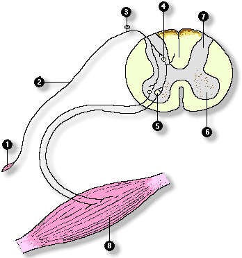 y ésta a su vez con motoneuronas del asta anterior; generando así