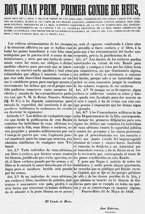NUEVO BANDO DEL GOBERNADOR D. JUAN PRIM, CONDE