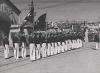 con uniformes blancos. Tras el Cuerpo de Enfermeras, la banda, que consistía