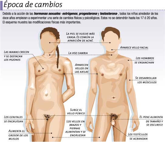los de las axilas. La voz cambia de tono y se hace más profunda.