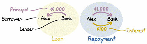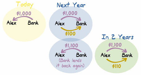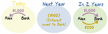 Alex paga un interés de ($1,000 × 10%) x 2 años = $200