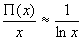 Dicho en lenguaje llano: la proporción de primos entre enteros es aproximadamente igual al inverso de ln x cuando x es grande.