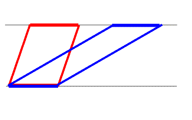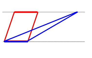 En este caso el área del paralelogramo de lados rojos es igual al paralelogramo de lados azules.