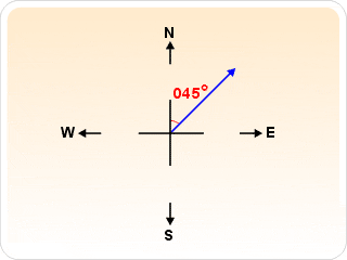 For example, north-east has a bearing of 045°, and south-west has a bearing of 225°. Bearing is an important concept in radar, sonar, navigation, and surveying.