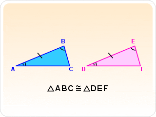 Regla de congruencia de los triángulos que establece que cuando dos ángulos y el lado incluido entre ellos en un triángulo son congruentes con los dos ángulos correspondientes y el lado incluido de otro triángulo, los triángulos son congruentes.