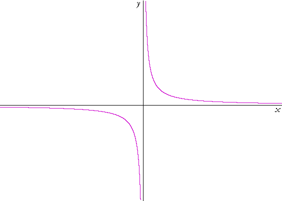 This is called the reciprocal function. (It is also the equation of a hyperbola, which, like the parabola, is one of the conic sections.) We are going to see how to draw the graph. We will ask -- and answer -- the following questions. The student should understand that these same questions must be answered when drawing the graph of any rational function. 1. Is the graph symmetrical with respect to the y-axis or to the