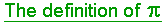 ![]() 11 THE CIRCLE ![]() A CIRCLE IS A PLANE FIGURE bounded by one line, called the circumference, such that all straight lines drawn from the center to the circumference, are equal to one another. A straight line from the center to the circumference is a called a radius. A diameter is a straight line through the center and terminating in both directions on the circumference. A radius, then, is half of a diameter; or, equivalently, a diameter is twice a radius: D = 2r. The definition of π The student no doubt knows a value for the famous number π 3.14 but that is not its definition. What, in fact, is the meaning of the symbol "π"? π symbolizes the ratio -- the relationship with respect to relative size ![]() So when we say that π = 3.14, we mean that the circumference of circle is a little more than three times longer than the diameter.