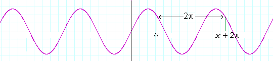 The height of the graph at x is equal to the height at x + 2π -- for all x.