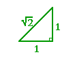 ![]() 6 THE ISOSCELES RIGHT TRIANGLE AN ISOSCELES RIGHT TRIANGLE is a standard mathematical object. The student should know the ratios of the sides. (An isosceles triangle has two equal sides. See Definition 8 in Some Theorems of Plane Geometry. The theorems cited below will also be found there.) Theorem. In an isosceles right triangle the sides are in the ratio 1:1: Proof. In an isosceles right triangle, the equal sides make the right angle. They are in the ratio 1 : 1. To find the ratio number of the hypotenuse h, we have, according to the Pythagorean theorem, h² = 1² + 1² = 2. Therefore, h = And therefore the three sides are in the ratio 1 : 1 : Note that since the triangle is isosceles, then the angles at the base are equal. (Theorem 3.) Therefore each of those acute angles is 45°. Example 1. Evaluate sin 45° and tan 45°. Answer. For any problem involving 45°, the student should not consult the Table but, rather, should sketch the triangle and place the ratio numbers. ![]() We see: