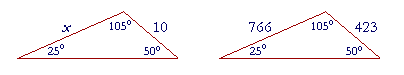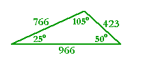 a) The three angles of a triangle are 105°, 25°, and 50°. In what ratio are a) the sides? Sketch the triangle.