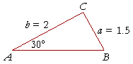 In triangle ABC, angle A = 30°, side a = 1.5 cm, and side b = 2 cm. Let us use the law of sines to find angle B.