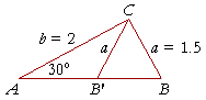 a < b. b sin A = 2 /2 = , which is greater than a. Therefore there are no solutions.