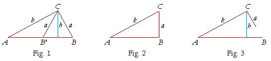 In the second -- h or b sin A = a -- there will be one right-angled triangle.