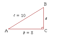 Problem 3.   Solve the right triangle ABC given that c = 10 cm and b = 8 cm.