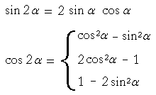 Note: In the sine formulas, + or − on the left is also + or − on the right. But in the cosine formulas, + on the left becomes − on the right; and vice-versa.