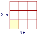Now, the side of the small shaded square is 1 inch. That square therefore is 1 square inch. And we can see that the entire square is made up of 9 of them. The entire square is 9 square inches.