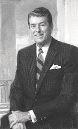 | Al final de sus dos términos en el cargo, Ronald Reagan vio con satisfacción los logros de su programa innovador conocido como la revolución de Reagan, la cual alcanzó revigorizar a la gente americana y a reducir su necesidad sobre el gobierno. El sintió que había satisfecho su compromiso de campaña para el año 1980 de restablecer "El grande y confidente rugido del progreso americano, el crecimiento y el optimismo". En el 6 de febrero de 1911, Ronald Wilson Reagan nació de Nelle y John Reagan en Tampico, Illinois. El asistió a la Escuela Superior en el cercano Dixon y después trabajó a su manera a través de la Universidad de Eureka. Allí, él estudió economía y sociología, jugó en el equipo del Fútbol Americano, y actuó en obras de la escuela. Despues de la graduación, se convirtió en anunciador de deportes en la radio. Una prueba para la televisión en 1937, le ganó un contrato en Hollywood. Durante las dos próximas décadas, apareció en 53 películas. Tiene dos hijos, Maureen y Michael, de su primer matrimonio, con la actriz Jane Wyman. En 1952 se casó con Nancy Davis, también actriz; sus hijos son Patricia Ann y Ronald Prescott. Como Presidente del Gremio de Actores de la Pantalla, Reagan se envolvió en conflictos sobre el asunto del comunismo en la industria del cine; sus opiniones políticas cambiaron de liberal a conservador. Viajó el país como anfitrión principal de la televisión, convirtiendose un portavoz para el conservadurismo. En 1966 fué eligído Gobernador de California por un margen de un millón de votos; fué reelido en 1970. Ronald Reagan ganó la nominación Presidencial republicana en el año 1980 y eligió como su compañero de papeleta al ex-congresista de Texas y embajador de las Naciones Unidas George Bush. Los electores preocupados por la inflación y por el confinamiento que ya llegaba a un año, de los americanos en Irán, barrieron con la papeleta republicana hacia el cargo. Reagan ganó 489 votos electorales contra 49 para el Presidente Jimmy Carter. En enero 20 de 1981, Reagan asumió el cargo. A solamente 69 días más tarde, fue baleado por un casi asesino, pero se recuperó rápidamente y volvió a sus deberes. Su tolerancia e ingenio durante el peligroso incidente hicieron que su popularidad creciéra. Ocupándose hábilmente del Congreso, Reagan obtuvo legislación para estimular el desarrollo económico, contener la inflación, aumentar los empleos, y para consolidar la defensa nacional. Emprendió un curso de corte de impuestos y gastos del gobierno, rechazando desviarse de él cuando la consolidación de las fuerzas de defensa conducjeron a un gran déficit. Una renovación de la autoconfianza nacional para el 1984, ayudó a Reagan y a Bush a ganar un segundo término con un número sin precedentes de votos electorales. Su victoria voltéoa sus contendientes democráticos Walter F. Mondale y Geraldine Ferraro. En 1986 Reagan obtúvo un reacondicionamiento del código de Impuesto sobre Ingresos, el cual eliminó muchas deducciones y eximió a millones de personas de bajos ingresos. Al final de su administración, la nación gozaba de su período más largo registrado de prosperidad pacífica sin recesión o depresión. En la política externa, Reagan intentó alcanzar " paz mediante la fuerza". Durante sus dos términos aumentó los gastos para la defensa en un 35 por ciento, pero intentó mejorar las relaciones con la Unión Soviética. En reuniones dramáticas con el líder soviético Mikhail Gorbachev, negoció un tratado el cual eliminaría los misiles nucleares de alcance medio. Reagan le declaró la guerra al terrorismo internacional, enviando bombarderos americanos contra Libia después de que se evidenciara que Libia estuvo implicada en un ataque contra soldados americanos en un club nocturno de Berlín occidental. Al ordenar escoltas navales en el Golfo Persa, mantuvo el flujo libre de crudo de petróleo durante la guerra de Iran-Iraq. En armonía con la doctrina de Reagan, él le dio apoyo a las acciones anti-comunistas en America Central, Asia, y África. En resúmen, los años de Reagan en la Presidencia viéron la restauración de la prosperidad, y la meta de la paz por la fuerza parecía estar dentro de el cumplimiento. |